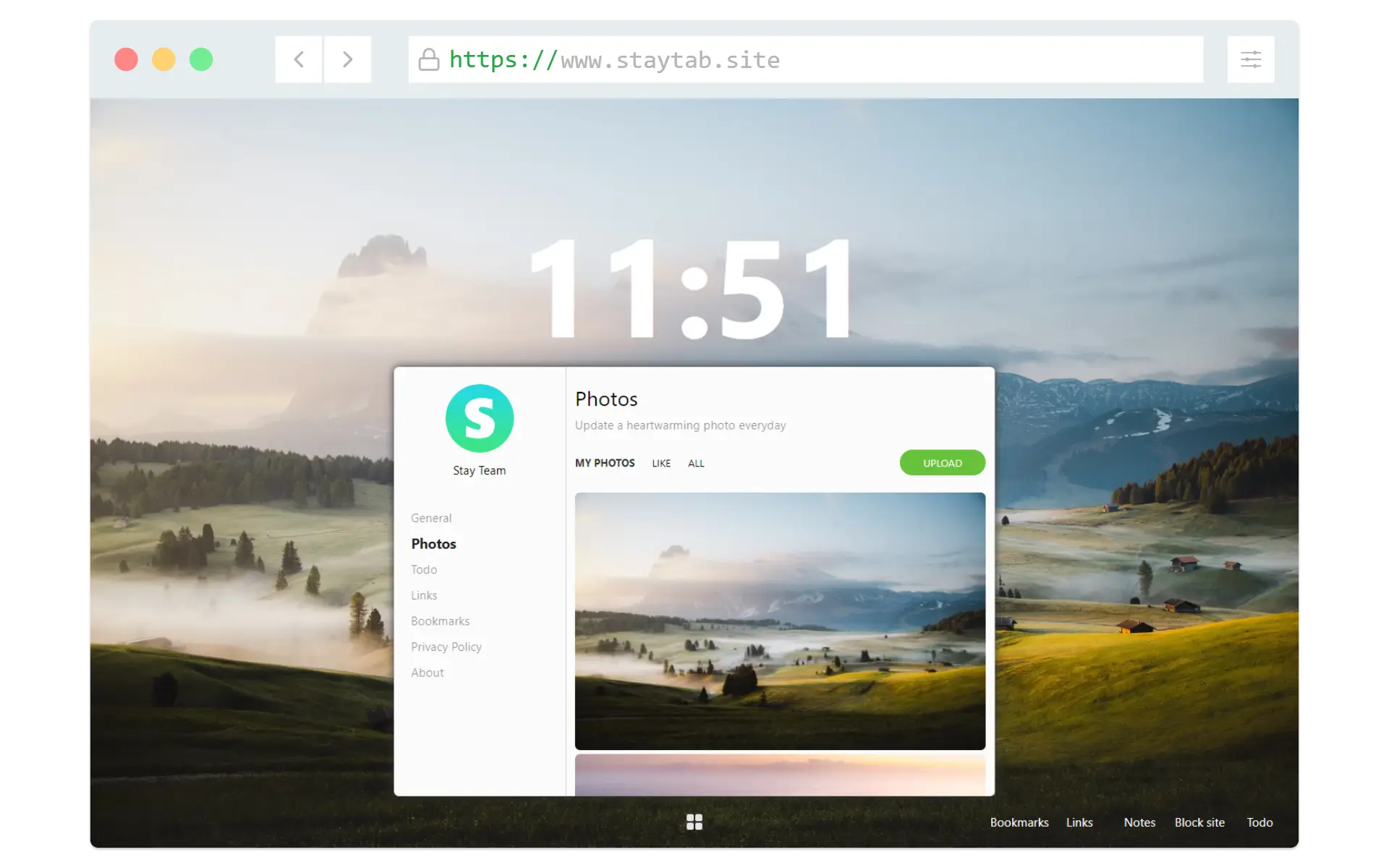 StayTab choose relaxing backgrounds everyday , can also upload your favorite pictures